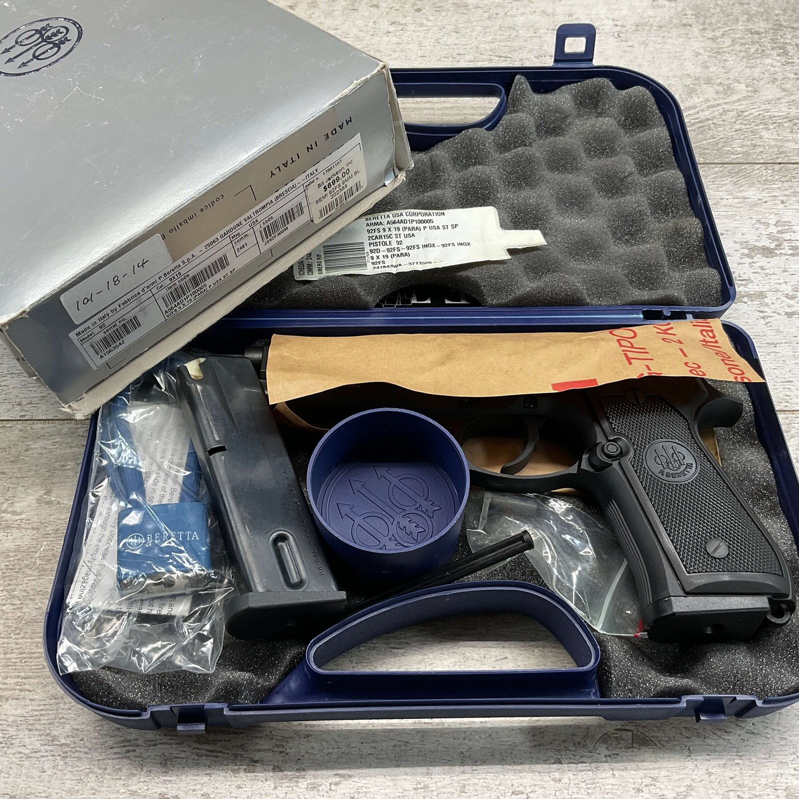 BERETTA 92FS 9MM SEMI AUTO PISTOL W/ LASERMAX LASER #4-12010-PF